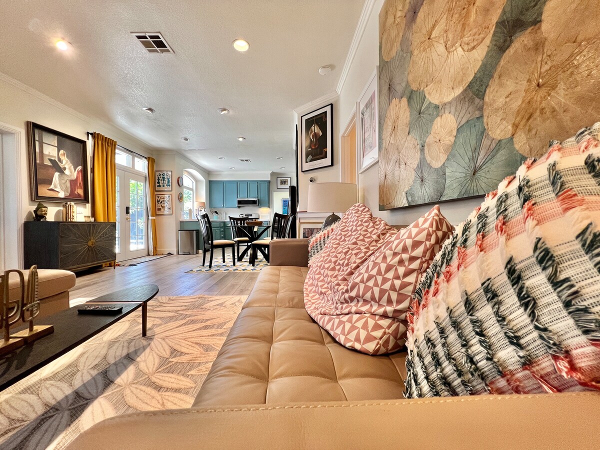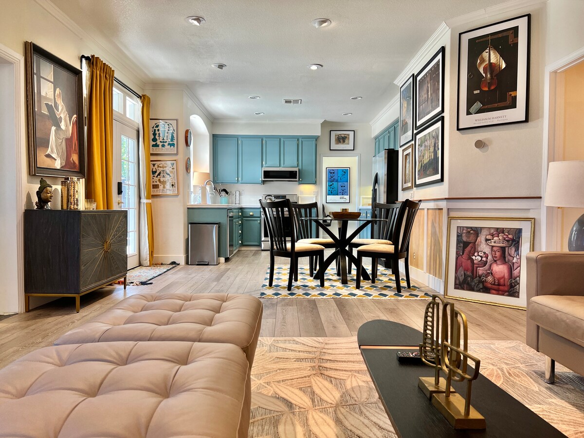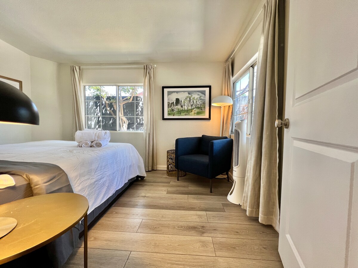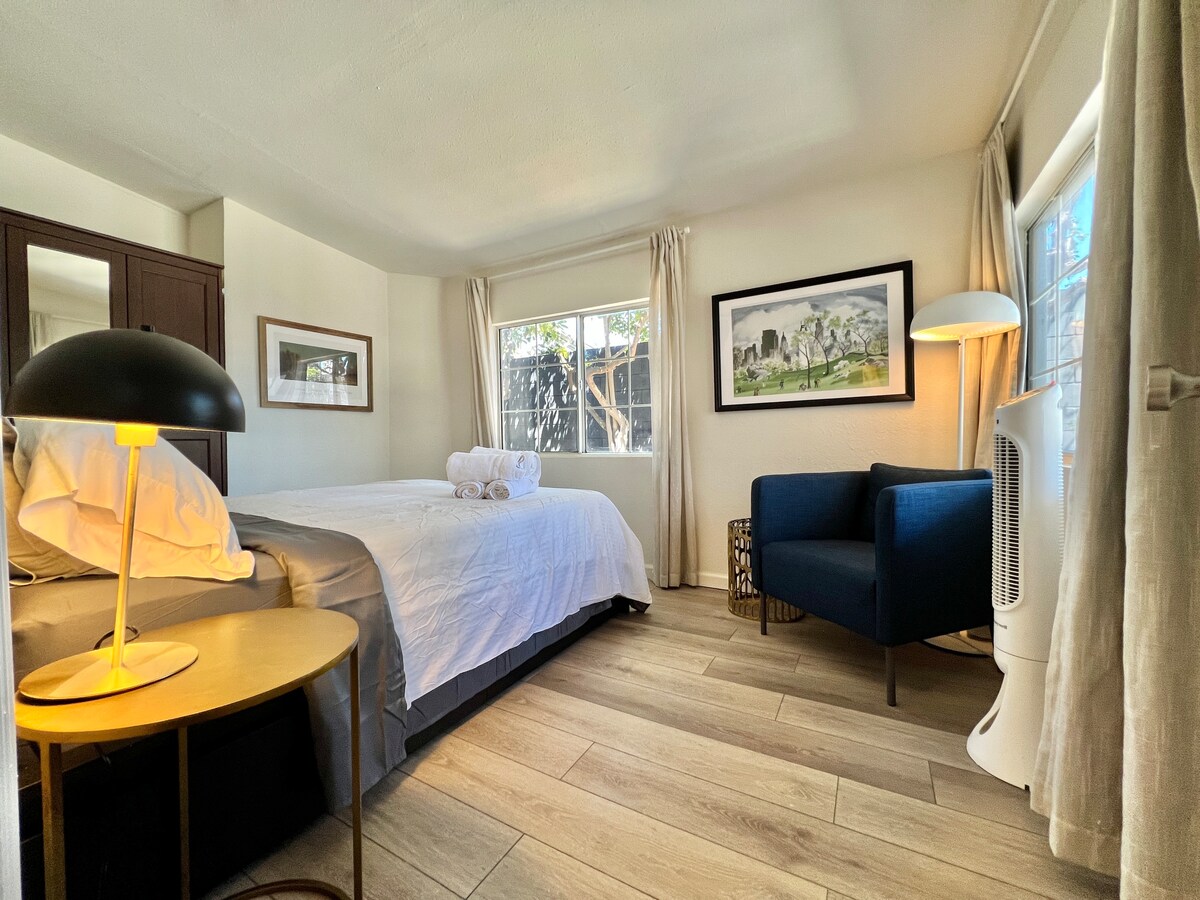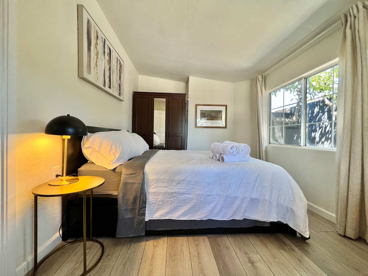 Midway CityWOW! This stylish place to stay is perfect for travelers looking for a cozy and stylish space. This 2-bedroom apartment features a private entrance through a back patio and garden area with space to relax and unwind. The open layout and full kitchen is perfect for longer stays if needed. Included is a separate workspace when you need remote work. The central location is close to freeways, Little Saigon, Disneyland, beaches, convention centers, and all things Socal.
